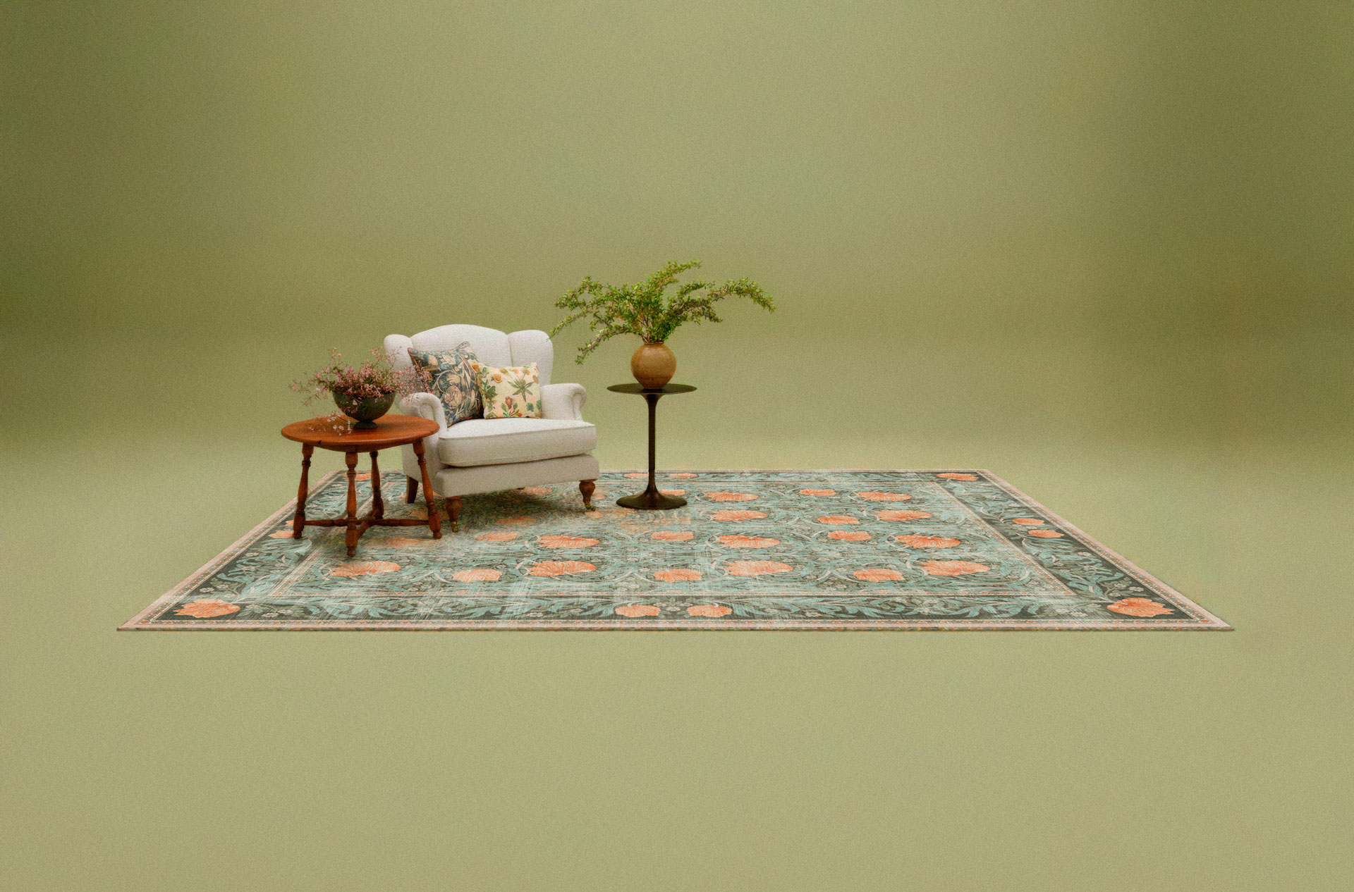 While working at Within LLC, I developed a set of AI-driven interior scenes designed to present Ruggable rugs within curated lifestyle environments.